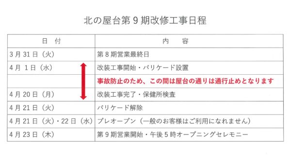 4月1日からは工事業者さんの出入り、機材や部材などの搬入・搬出など、屋台は工事現場そのものになります。